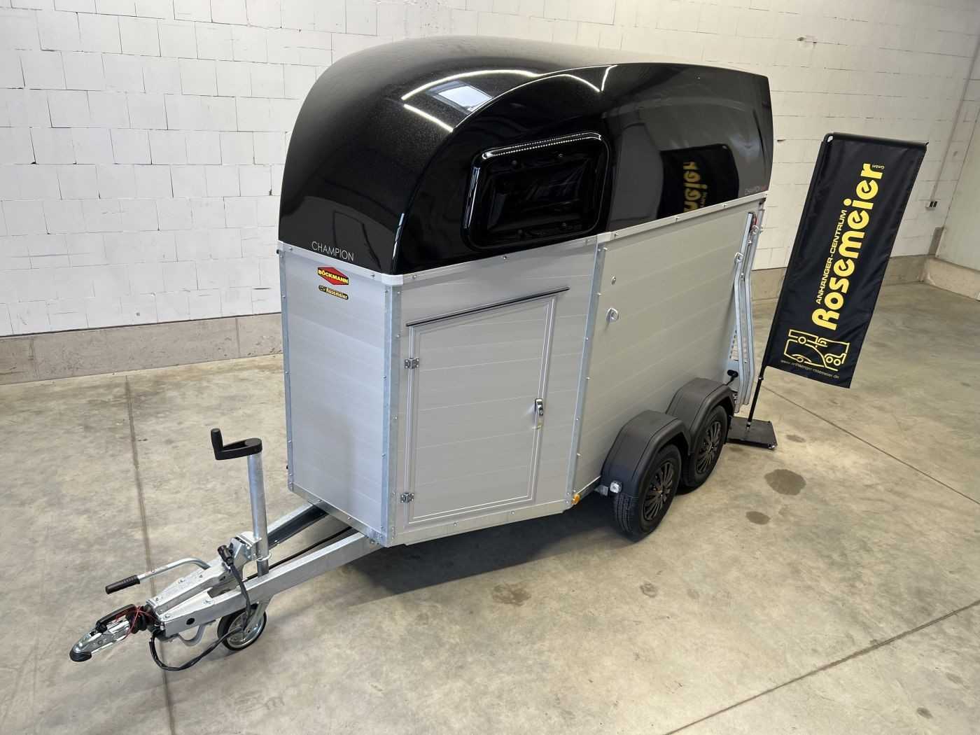 Pferdeanhänger Aluboden, Sattelkammer, Türklappenkombination, Trittschutz, Trittleisten auf der Beladeklappe, Radstoßdämpfer für die 100 km/h-Abnahme