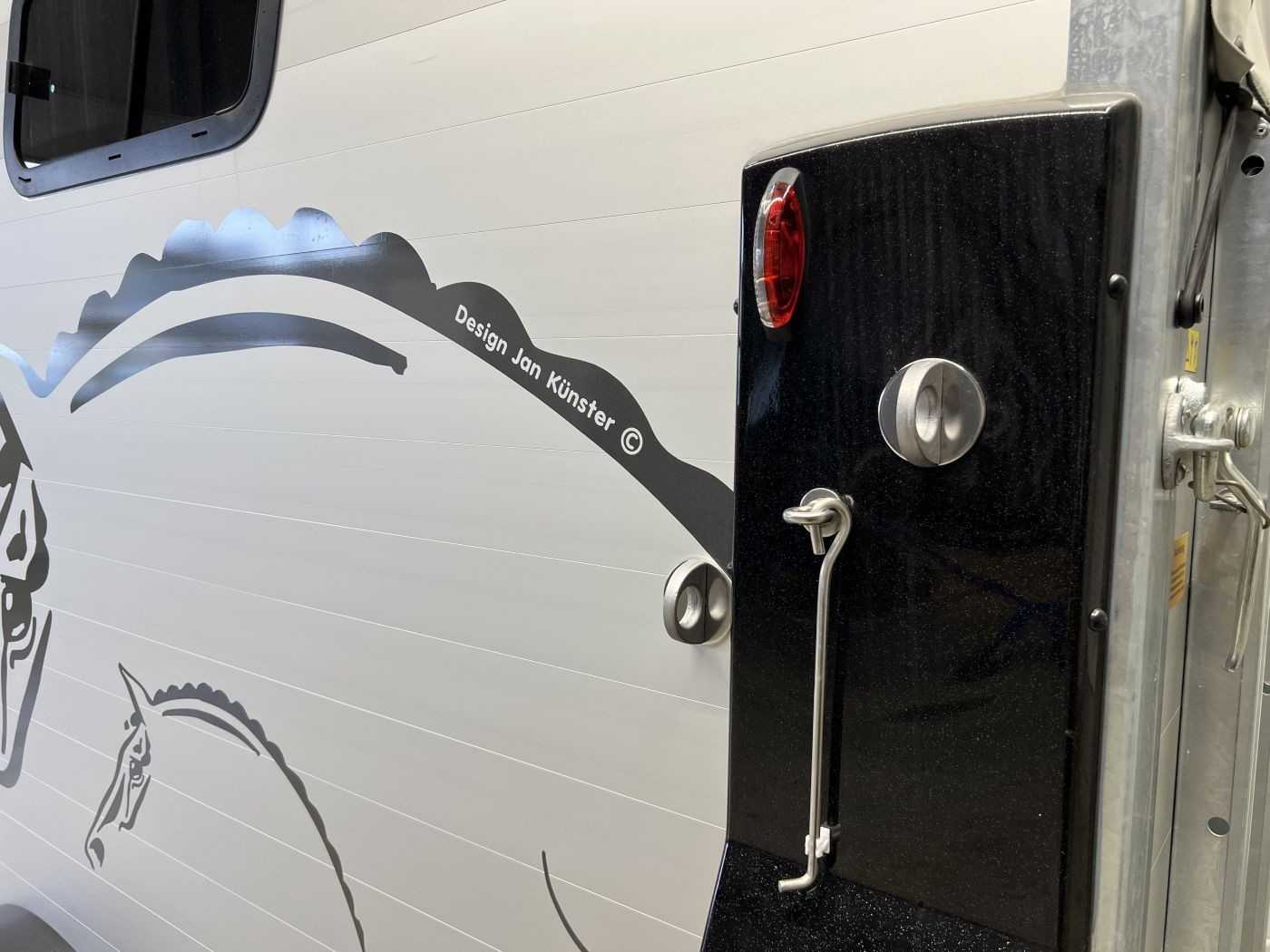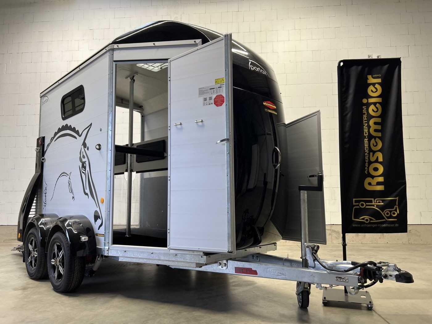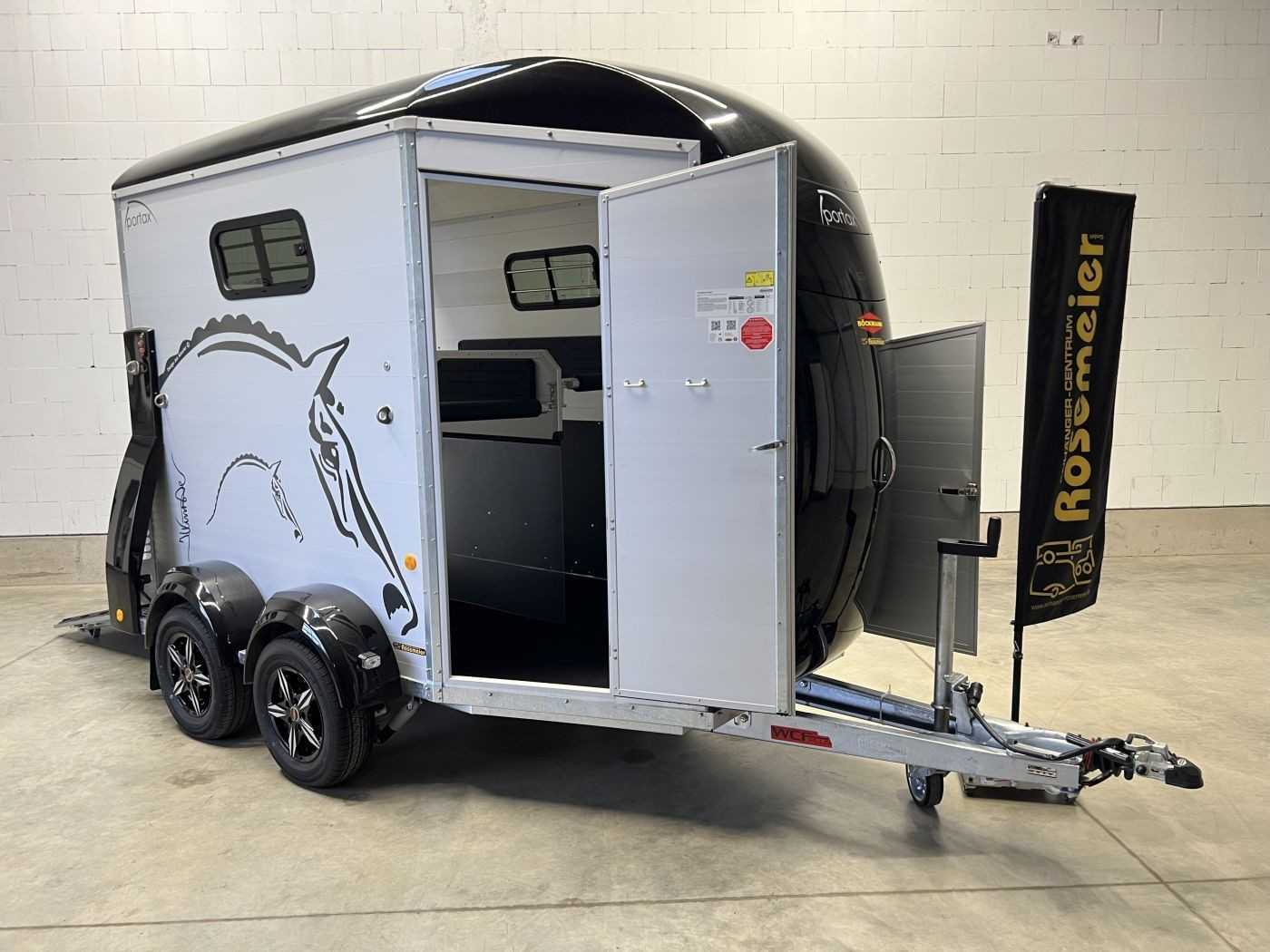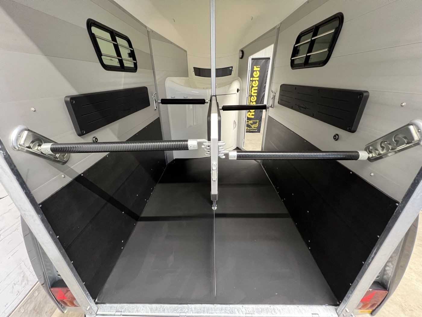 Ein besonderes Highlight der Modelle ist der neue Portax Lichtbogen, der das direkte Blendlicht auf ein Minimum reduziert. Dadurch werden Störfaktoren für Ihre Pferde deutlich verringert und alle Beteiligten gelangen entspannt ans Ziel. Doch auch im Innenraum hat sich einiges im Vergleich zum Vorgängermodell getan. Ein Exzenterspanner und ein Magnetfeststeller sind absolute Neuheiten, die im Pferderaum das Handling vereinfachen. So ermöglicht der Exzenterspanner den einfachen Ausbau der Mittelpfosten-Trennwand und ermöglicht so den komfortablen Transport von Stute mit Fohlen. Ein Magnetfeststeller ermöglicht das Feststellen der Trennwand-Flügel auf beiden Seiten und gewährleistet so viel Platz und Sicherheit beim Verladen.