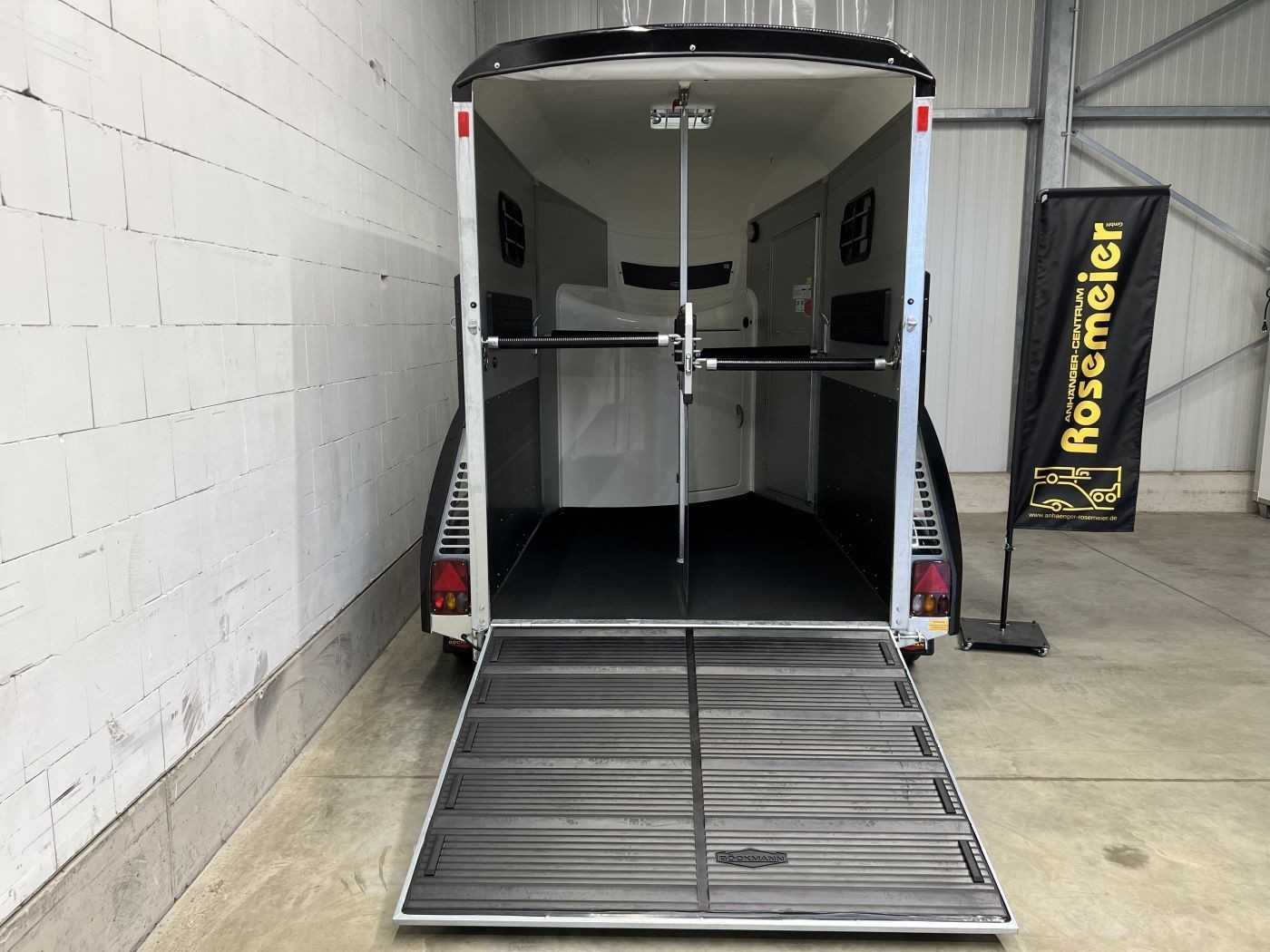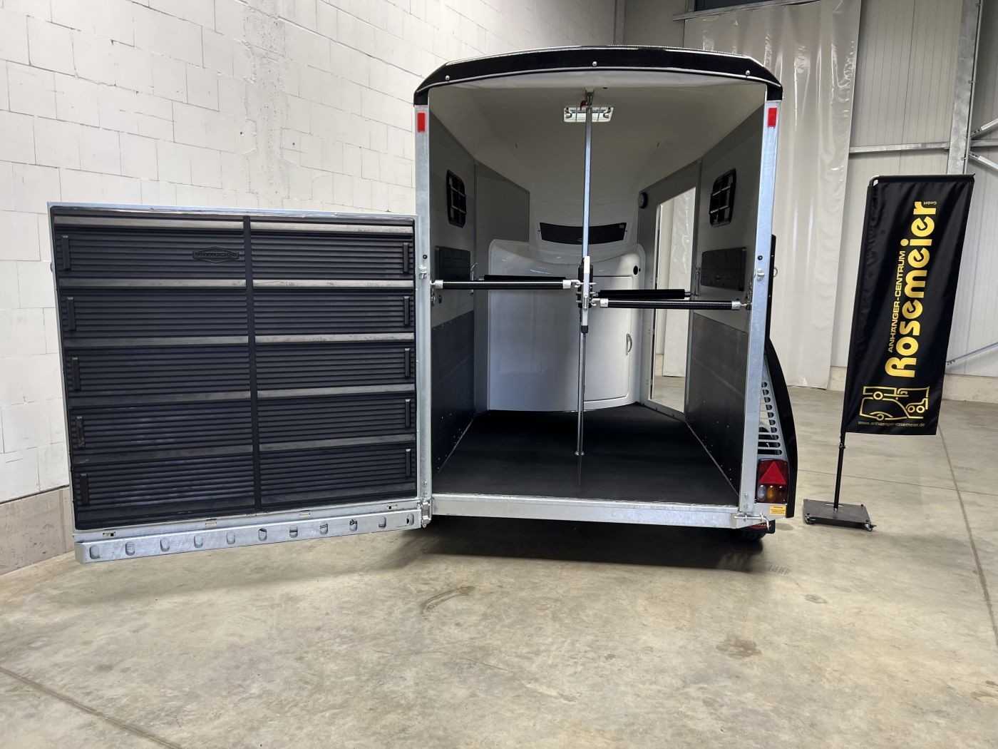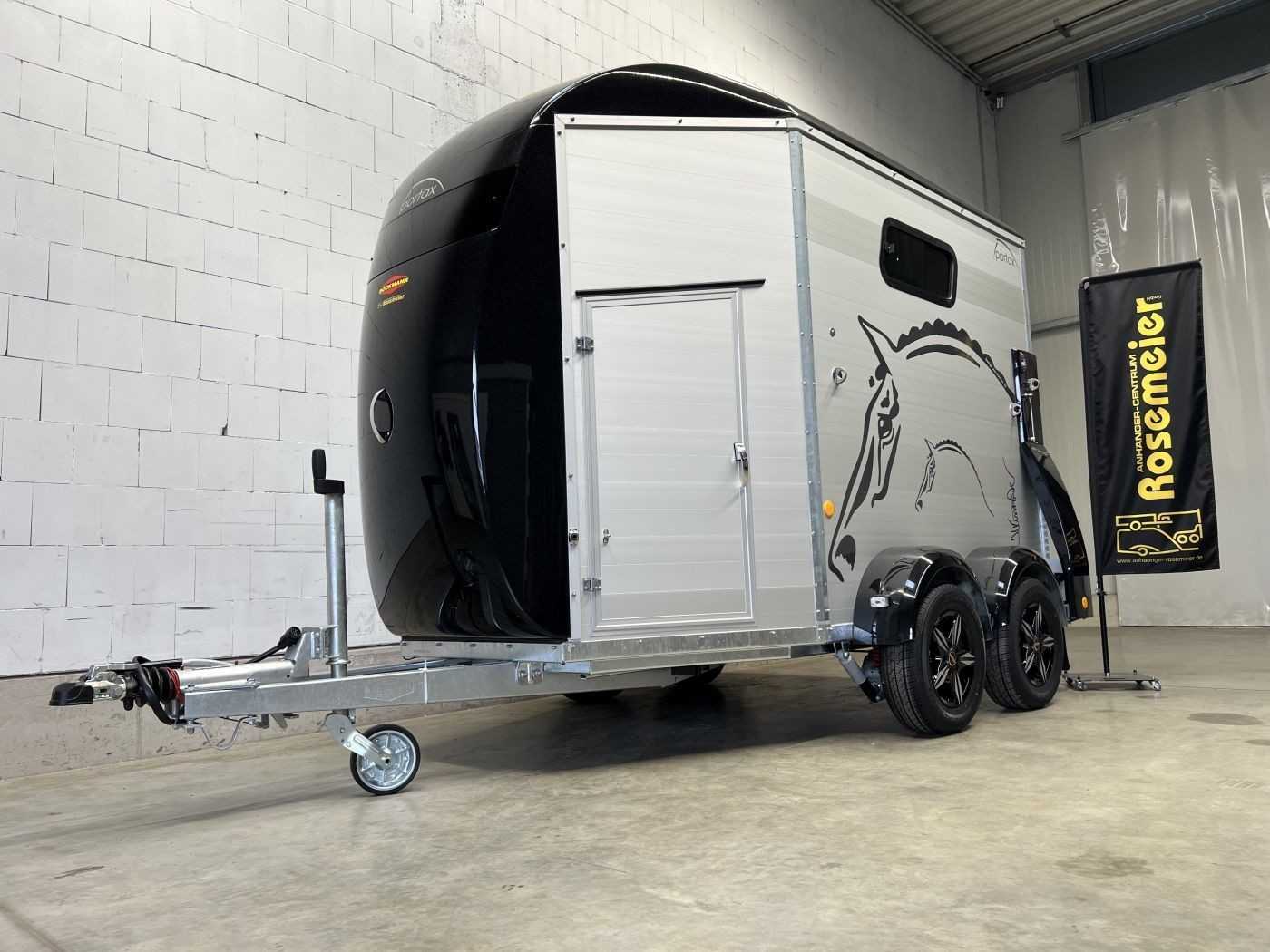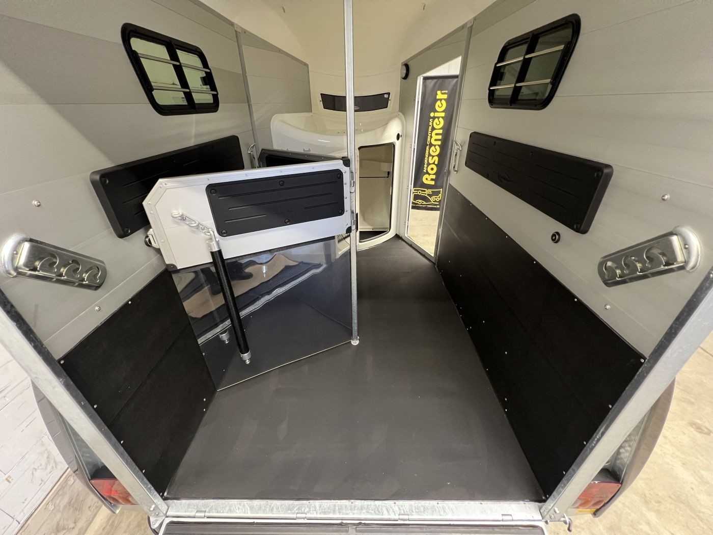 Pferde Seitlicher Trittschutz aus hochfestem Kunststoff Seitenpolsterung beidseitig Dachlüfter und 2 Schiebefenster seitlich sorgen für ein optimales Raumklima Extrem getöntes Bugfenster (Portax Lichtbogen), reduziert Blendlicht erheblich Heckklappe-/Flügeltürkombination ermöglicht eine Beladung per Stapler um z.B. Rundballen oder Futtermittel zu transportieren Automatikstützrad mit leichtgängiger Kurbel MSS Sicherheitsboxenstangensystem Planenlift mit integriertem Lüftungsnetz schützt im geschlossenen Zustand vor Regen und Kälte und ermöglicht gleichzeitig das Eindringen von Luft Gummiboden mit rutschfester Textilstruktur für einen sicheren Stand der Pferde Boxenstangenzusatzpolsterung vorne Boxenstangen vorne und hinten höhenverstellbar Abschließbarer Kupplungskopf Viel Platz für den Schweif durch großen Abstand zwischen Boxenstange und Heckklappe Ausreichend Platz zum Auftrensen zwischen Sattelkammer und Boxenstangen Schmutzfänger Begrenzungsleuchten Rangiergriff vorne Bei uns selbstverständlich inkl. Fahrzeugpapiere