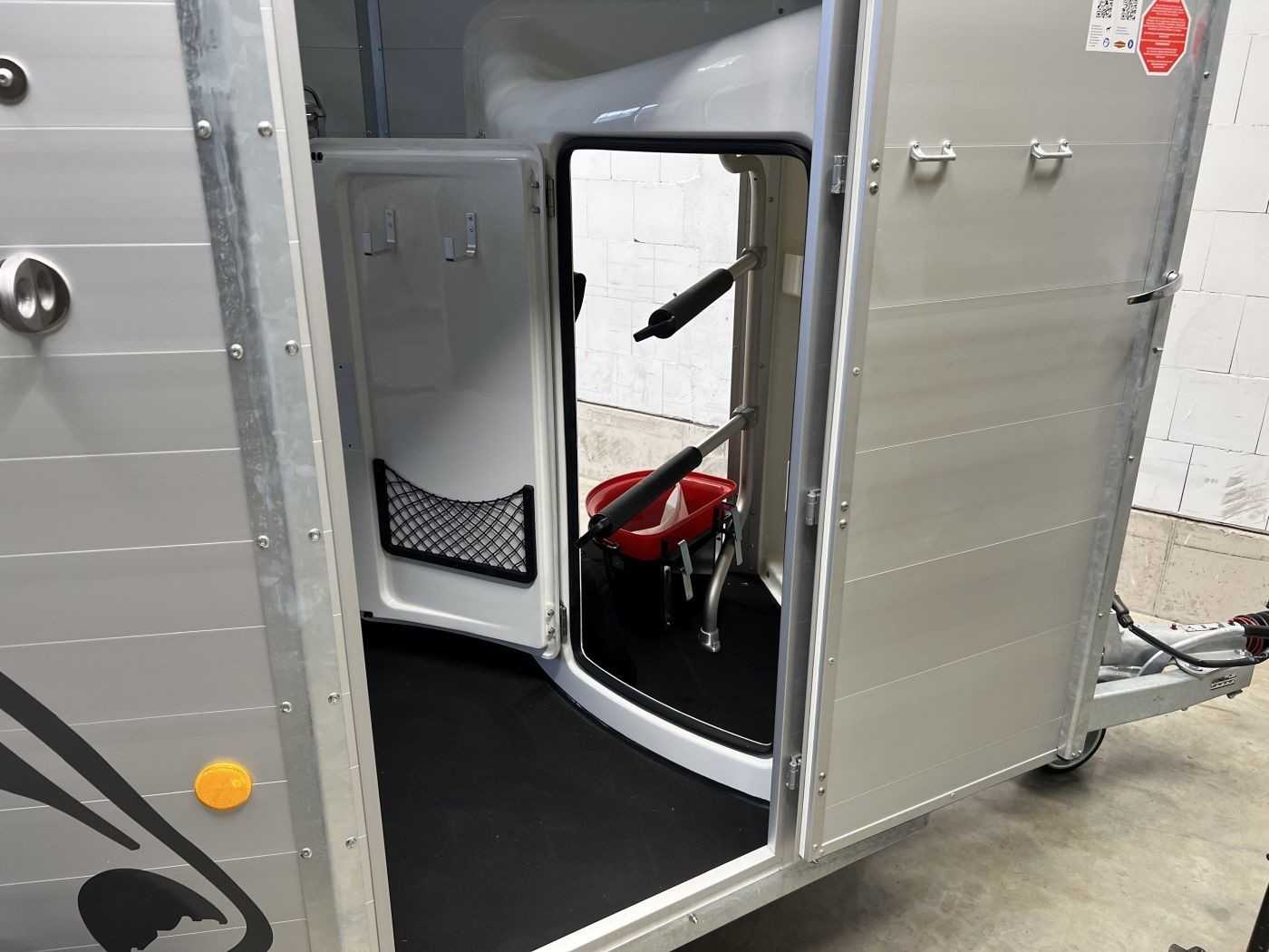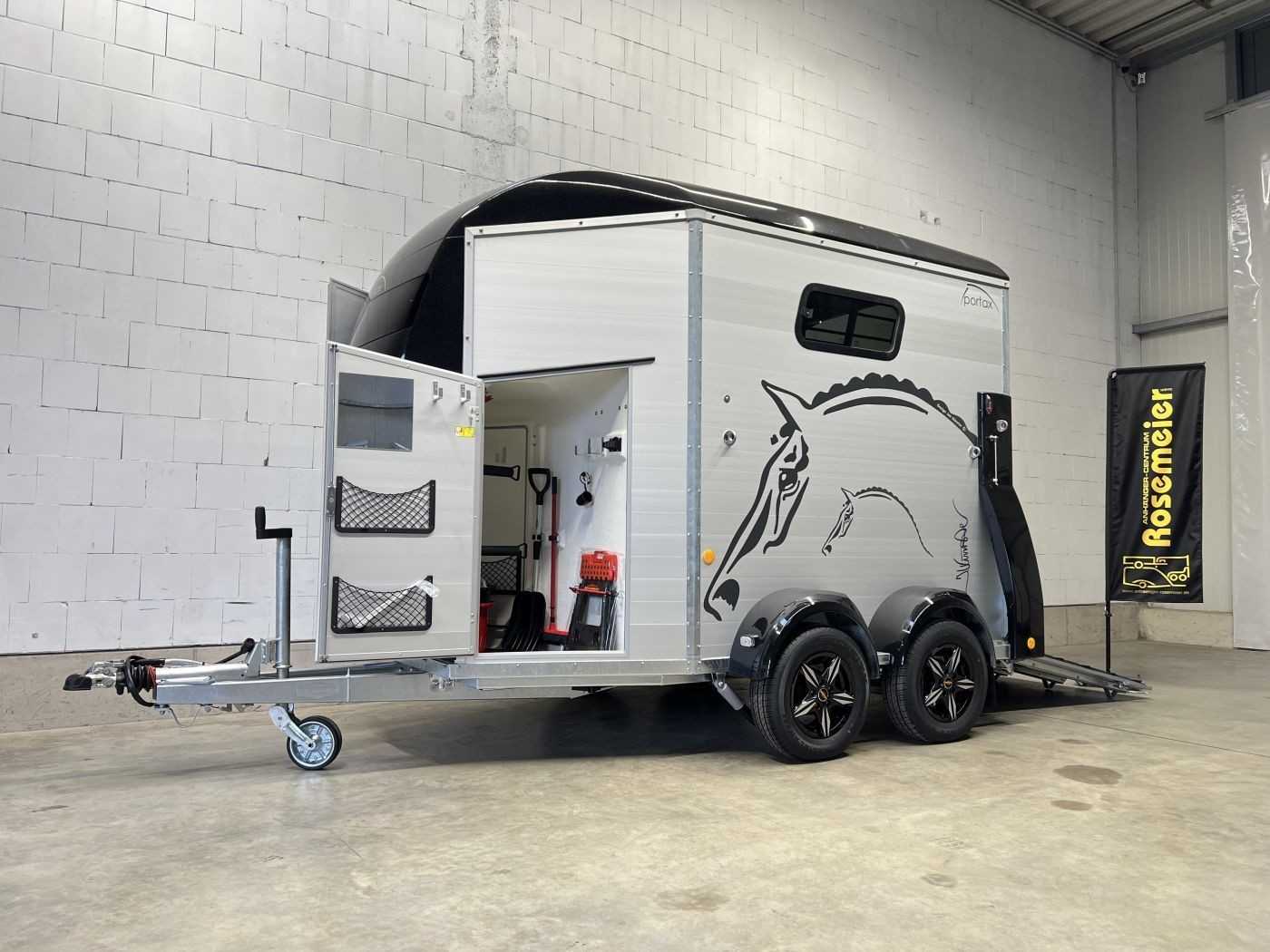 Die neuen Portax SKA und L SKA verfügen über eine Sattelkammer, die von innen und außen zugänglich ist, bieten zusätzlichen Platz vor den Pferden und einen einfachen Zugang zum Pferderaum durch die mannshohe Einstiegstür.