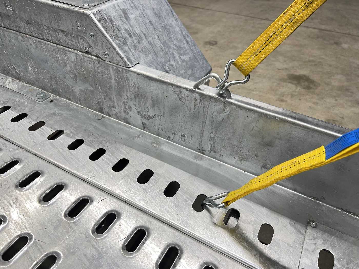 - TracStrapSystem zur optimalen Ladungssicherung für Minibagger und andere Kettenfahrzeuge erlaubt eine erstklassige Sicherung innerhalb kürzester Zeit.