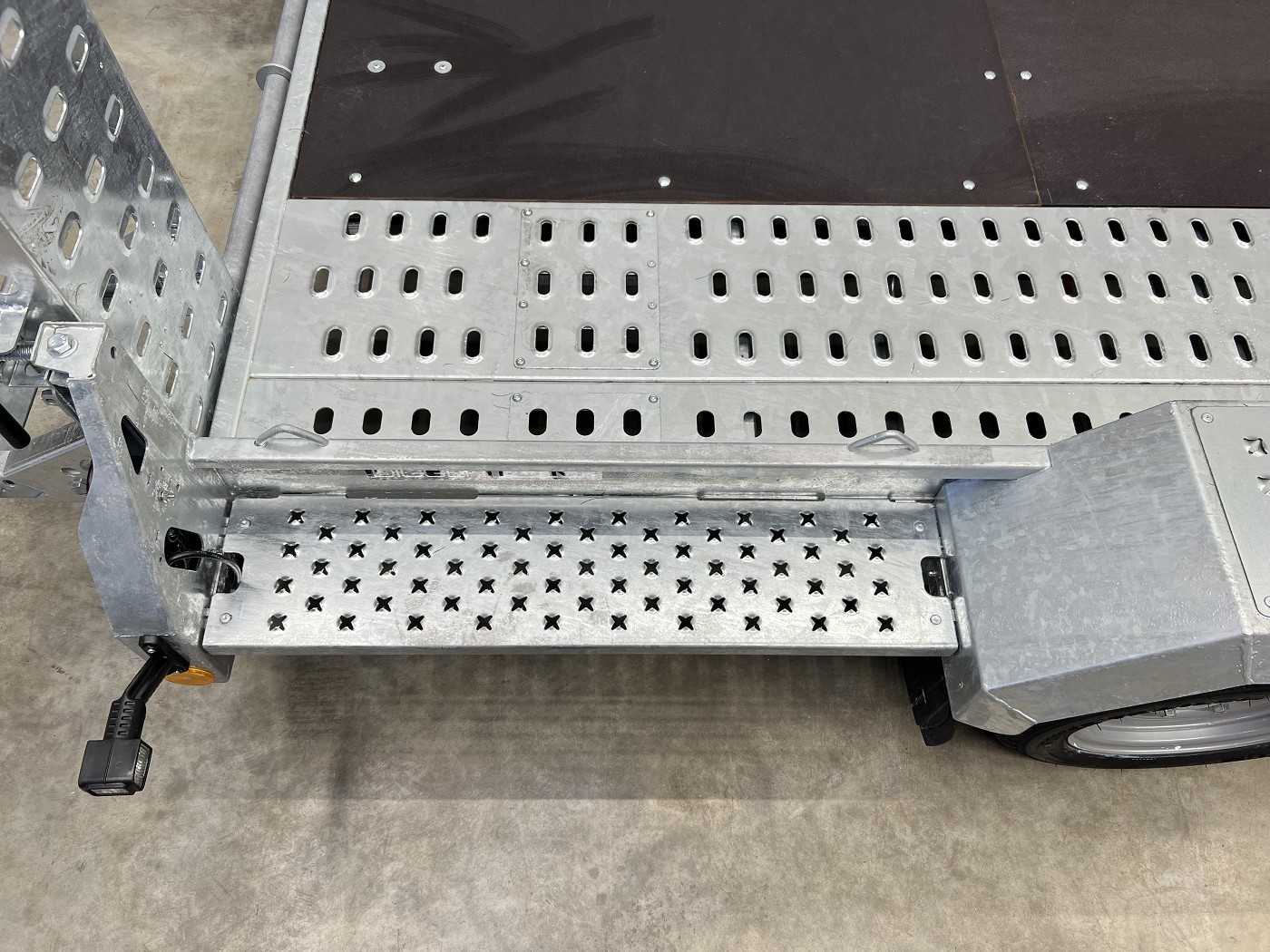 - geschlossene einteilige Auffahrrampe hinten mit integrierter Schiene und Federunterstützung
