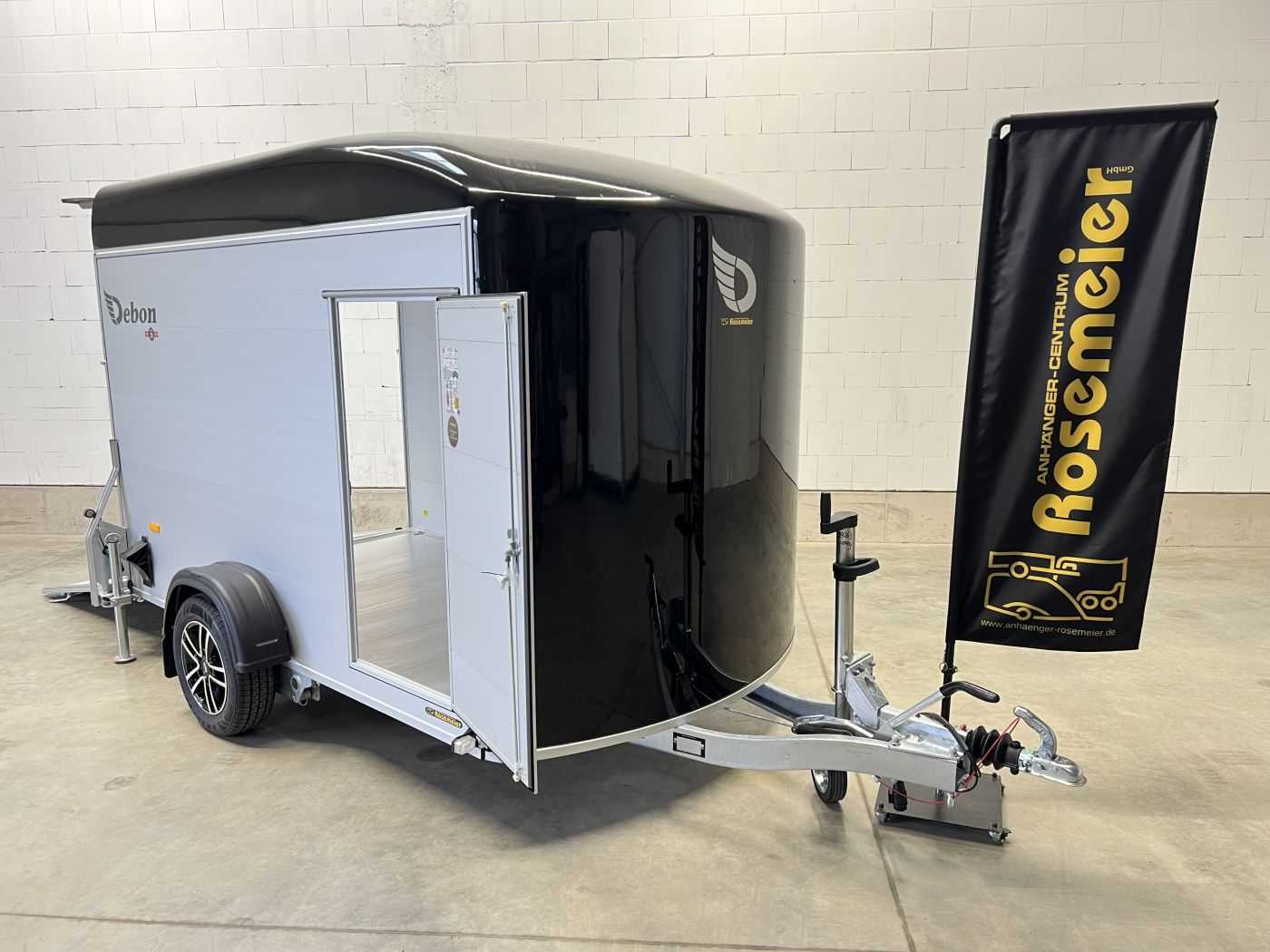 Alu-Kofferanhänger mit seitlicher Einstiegstür und Alu-Felgen