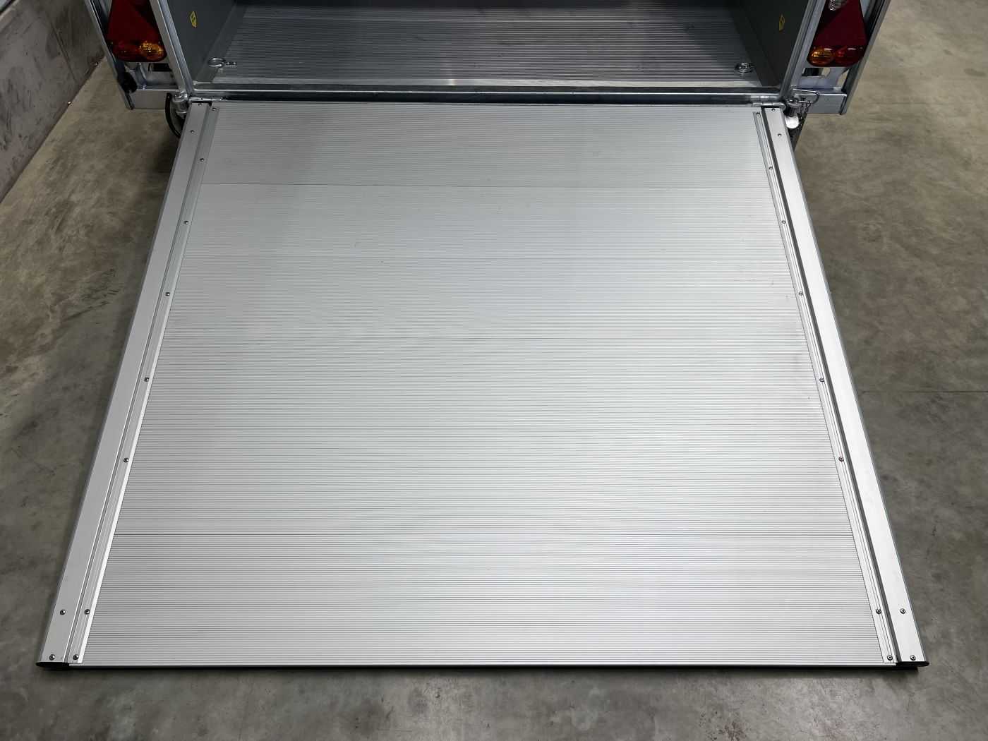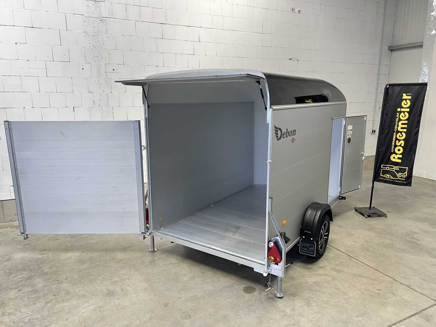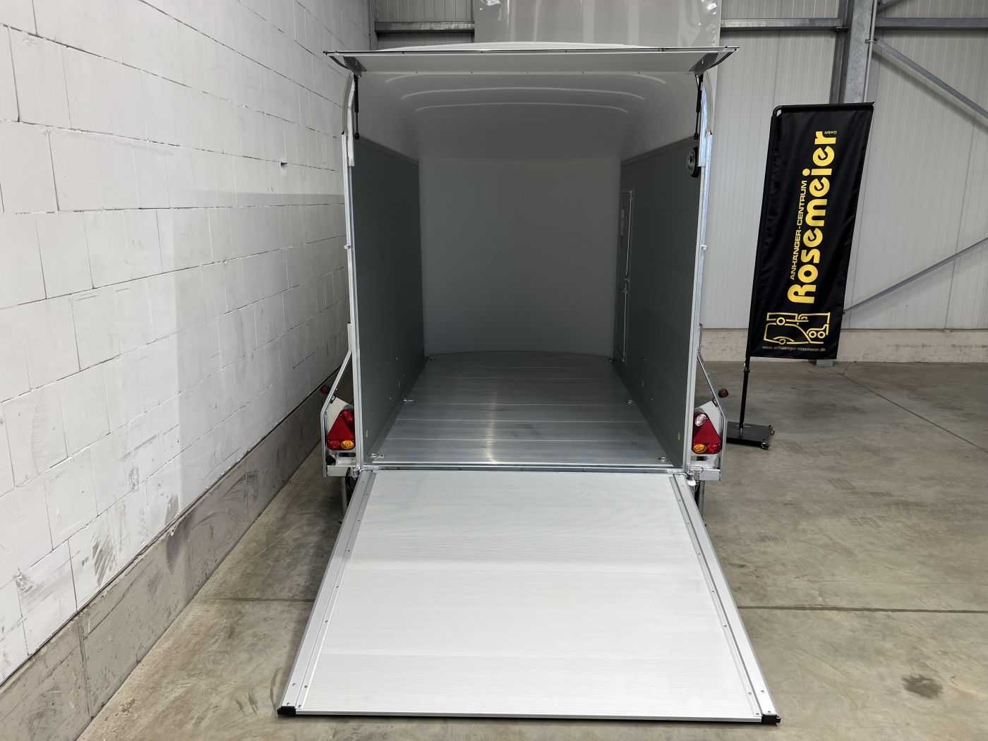 Alu-Kofferanhänger mit seitlicher Einstiegstür und Alu-Felgen