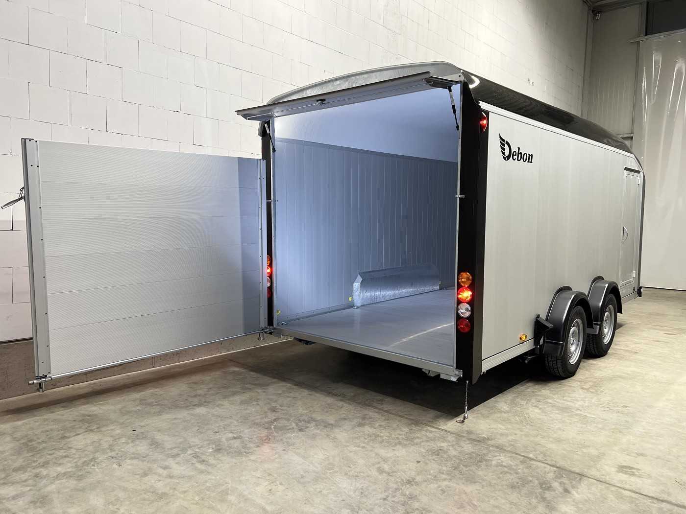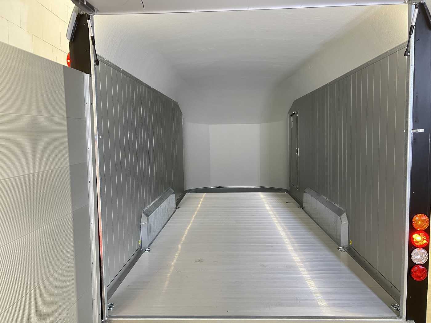 Alu-Kofferanhänger mit seitlicher Einstiegstür und Tür-Rampen-Kombination