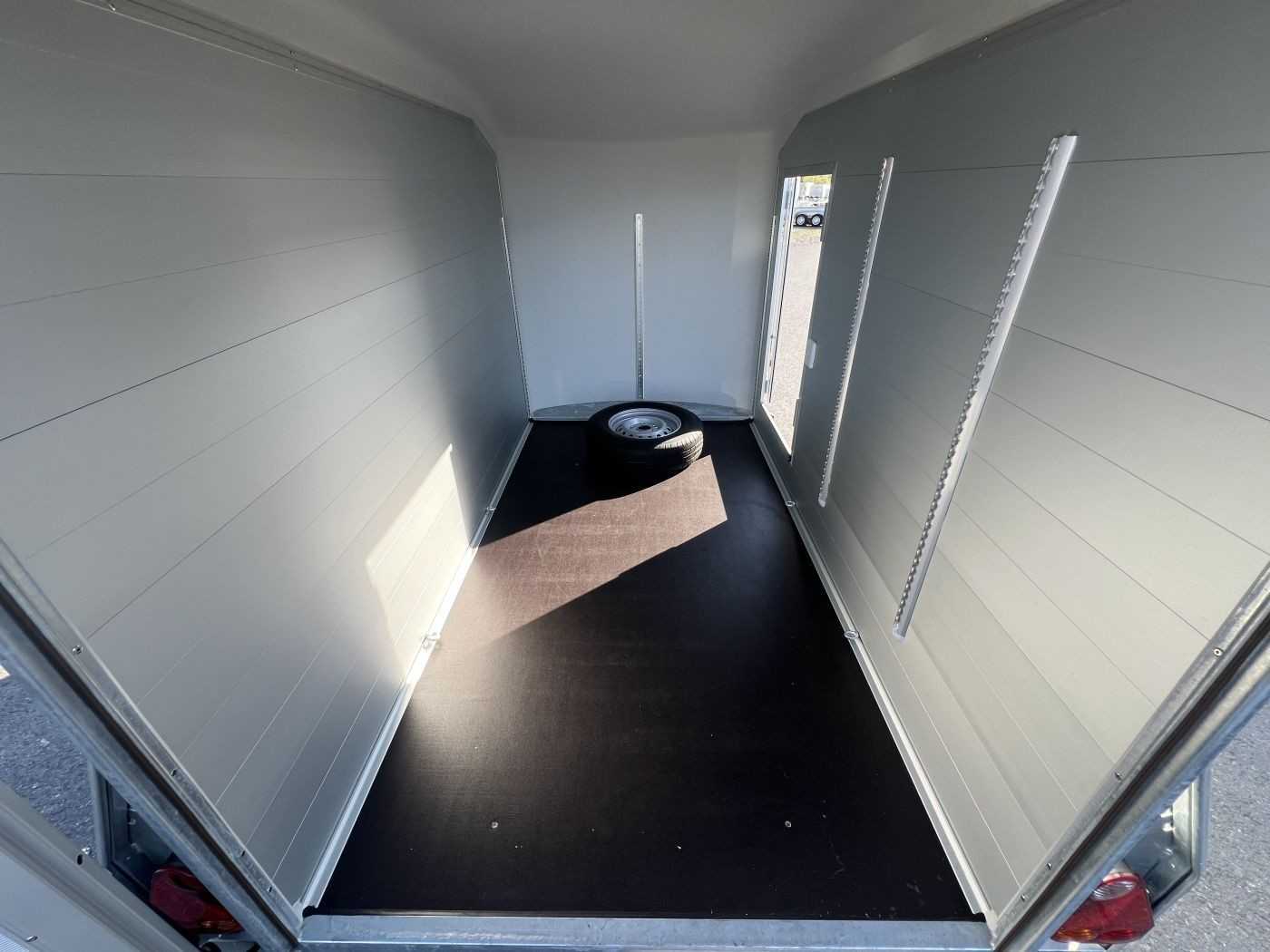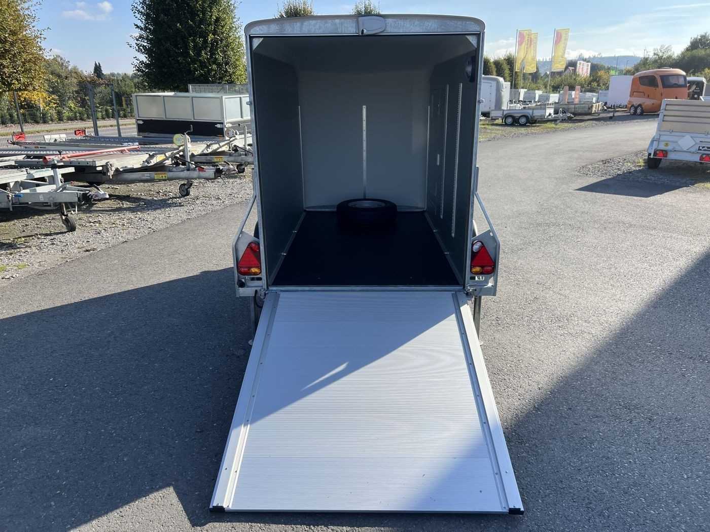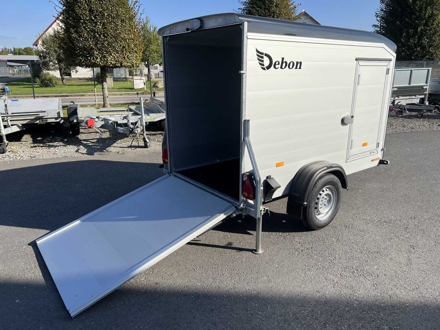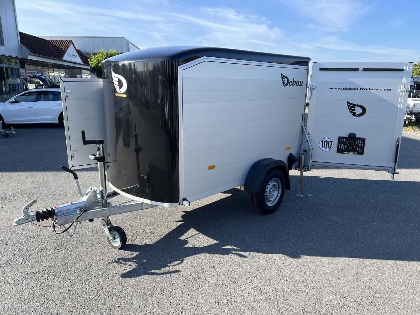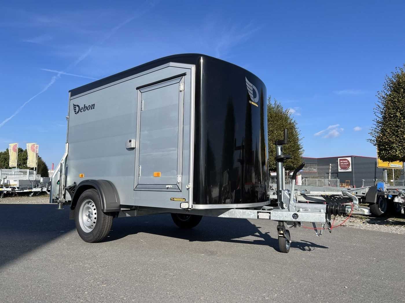 Gebrauchter Debon Kofferanhänger aus Aluminium mit aerodynamischer Polyesterhaube und Seitentür