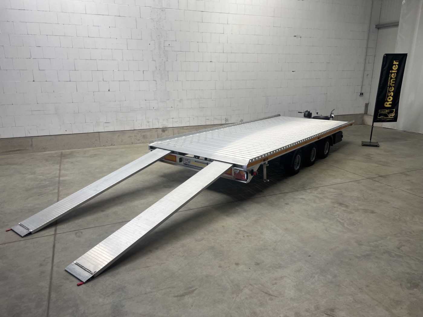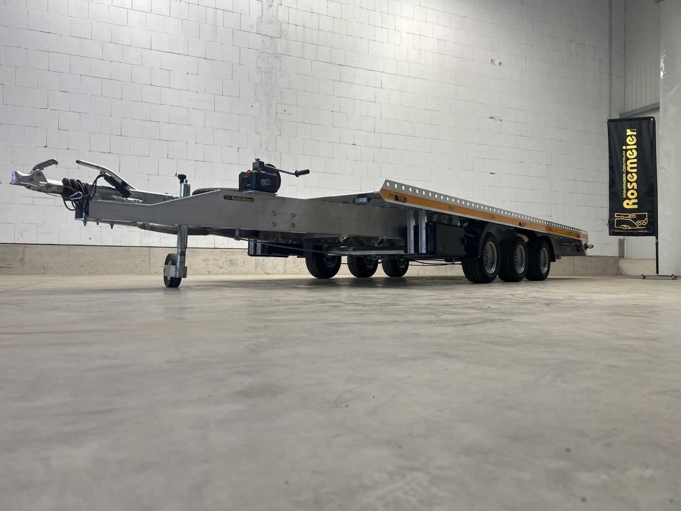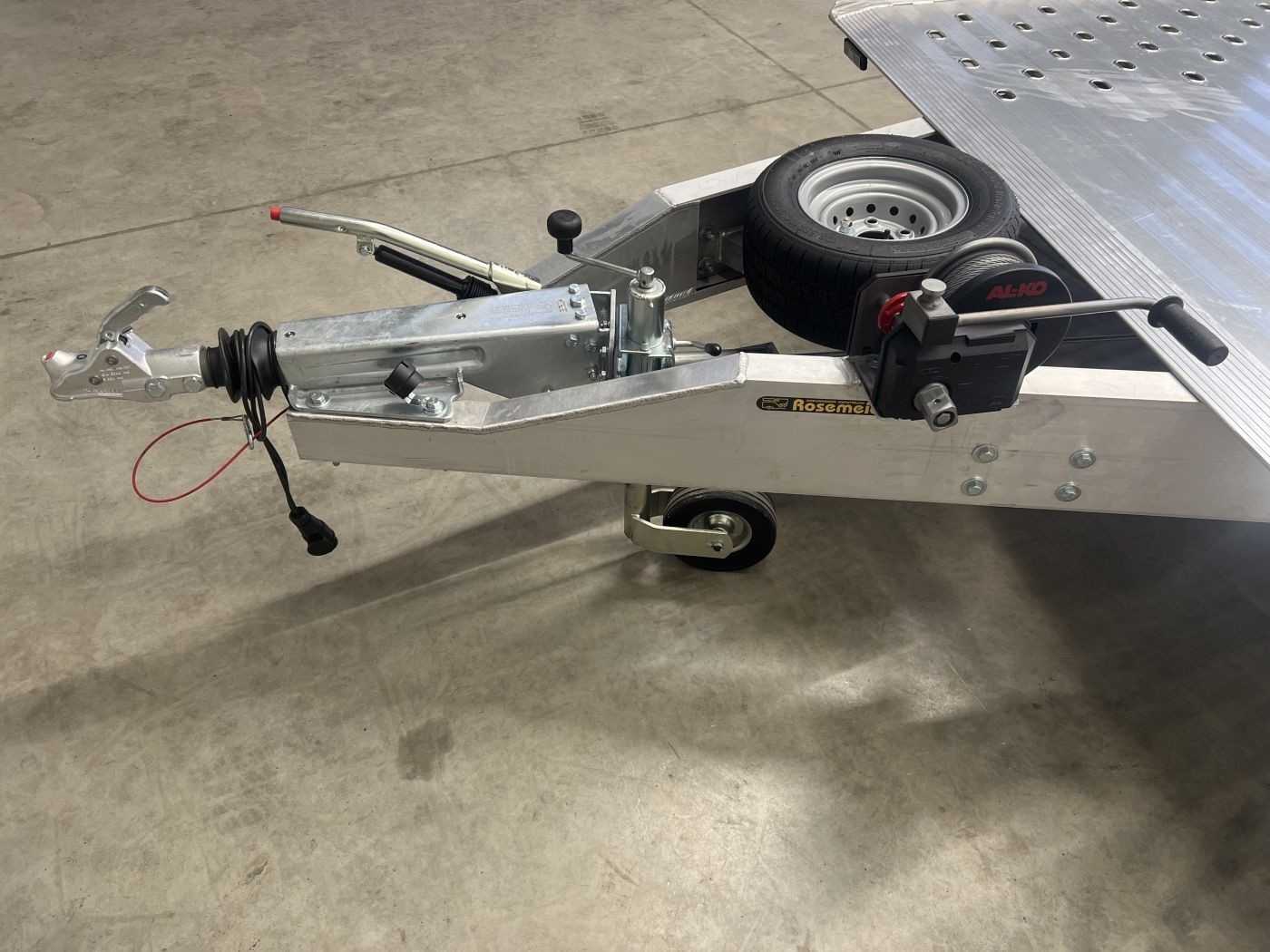 Stabiler Autotransporter mit geschlossenem Aluboden, Seilwinde, Reserverad und Auffahrrampen