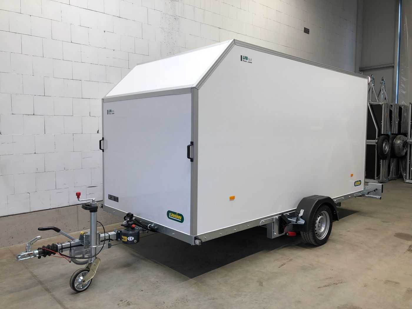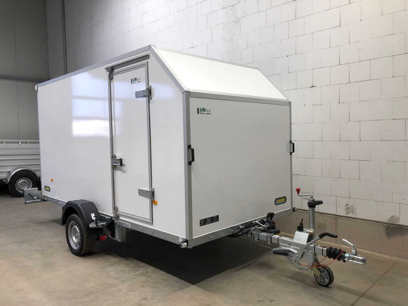Absenkbarer Kofferanhänger mit Seitentür und Aeroschräge von Unsinn Fahrzeugtechnik