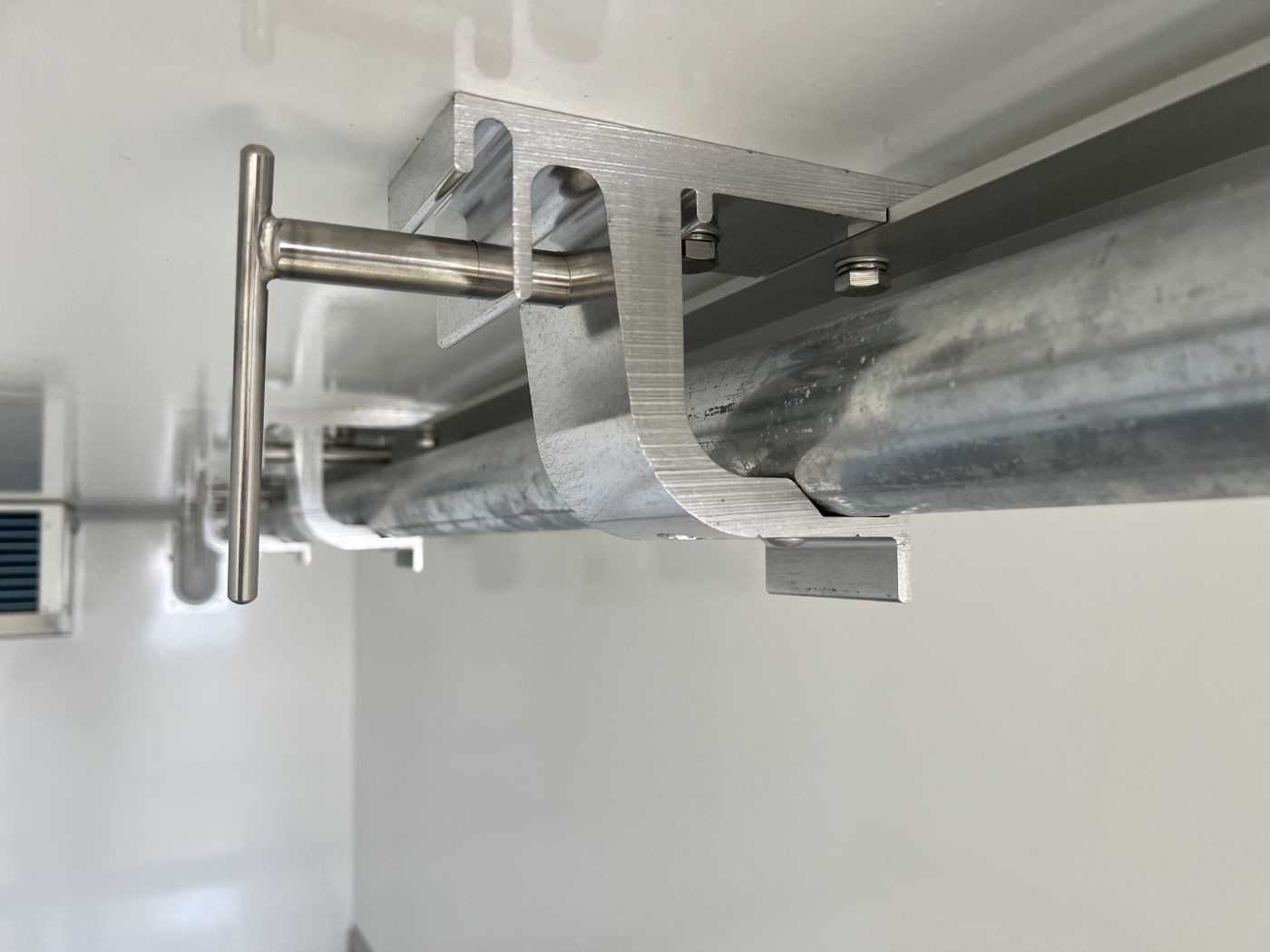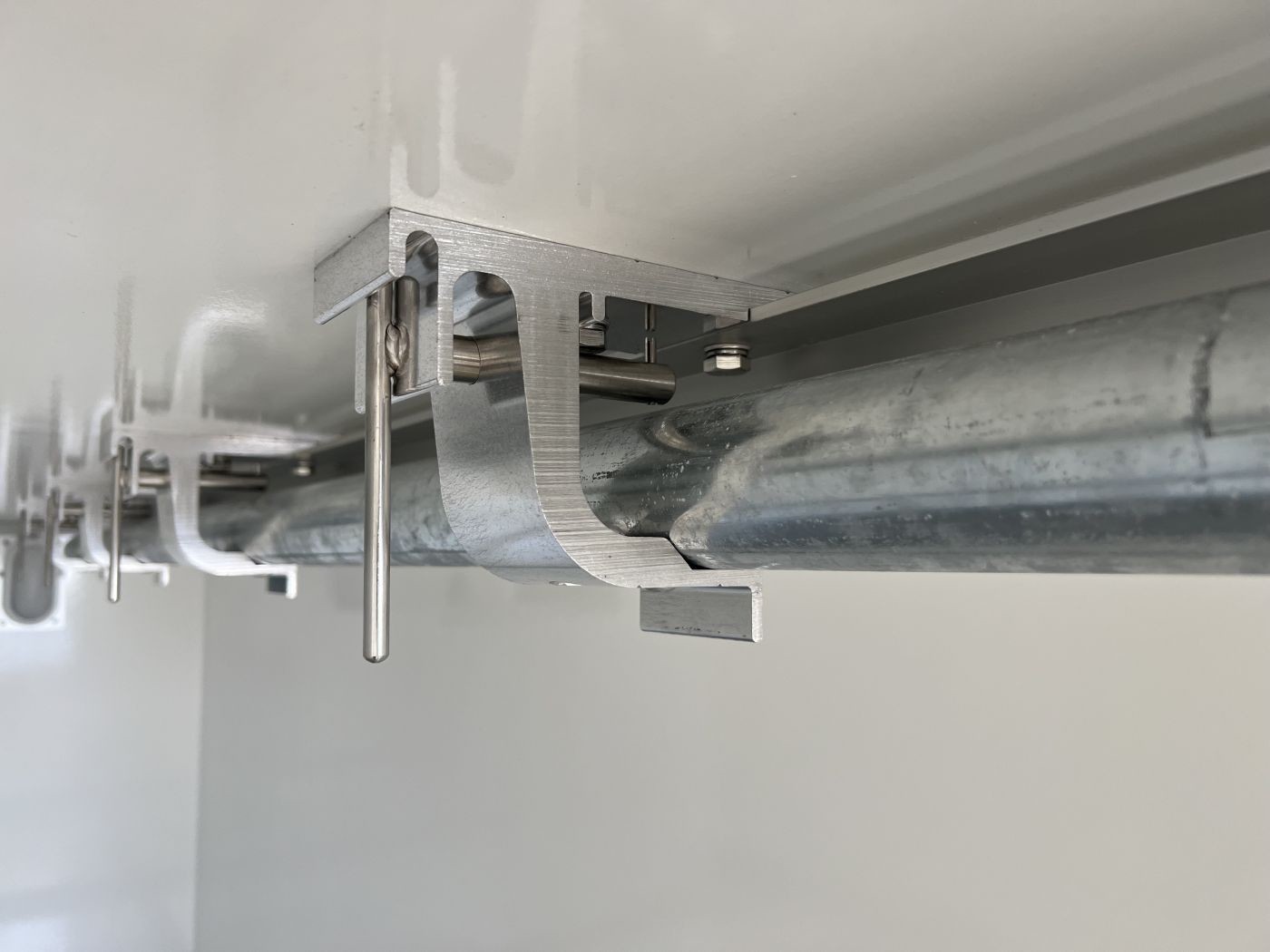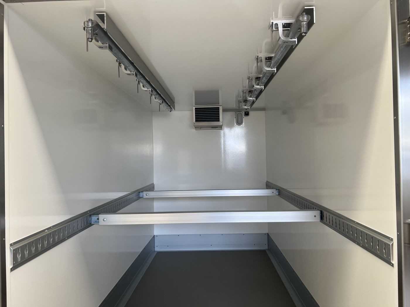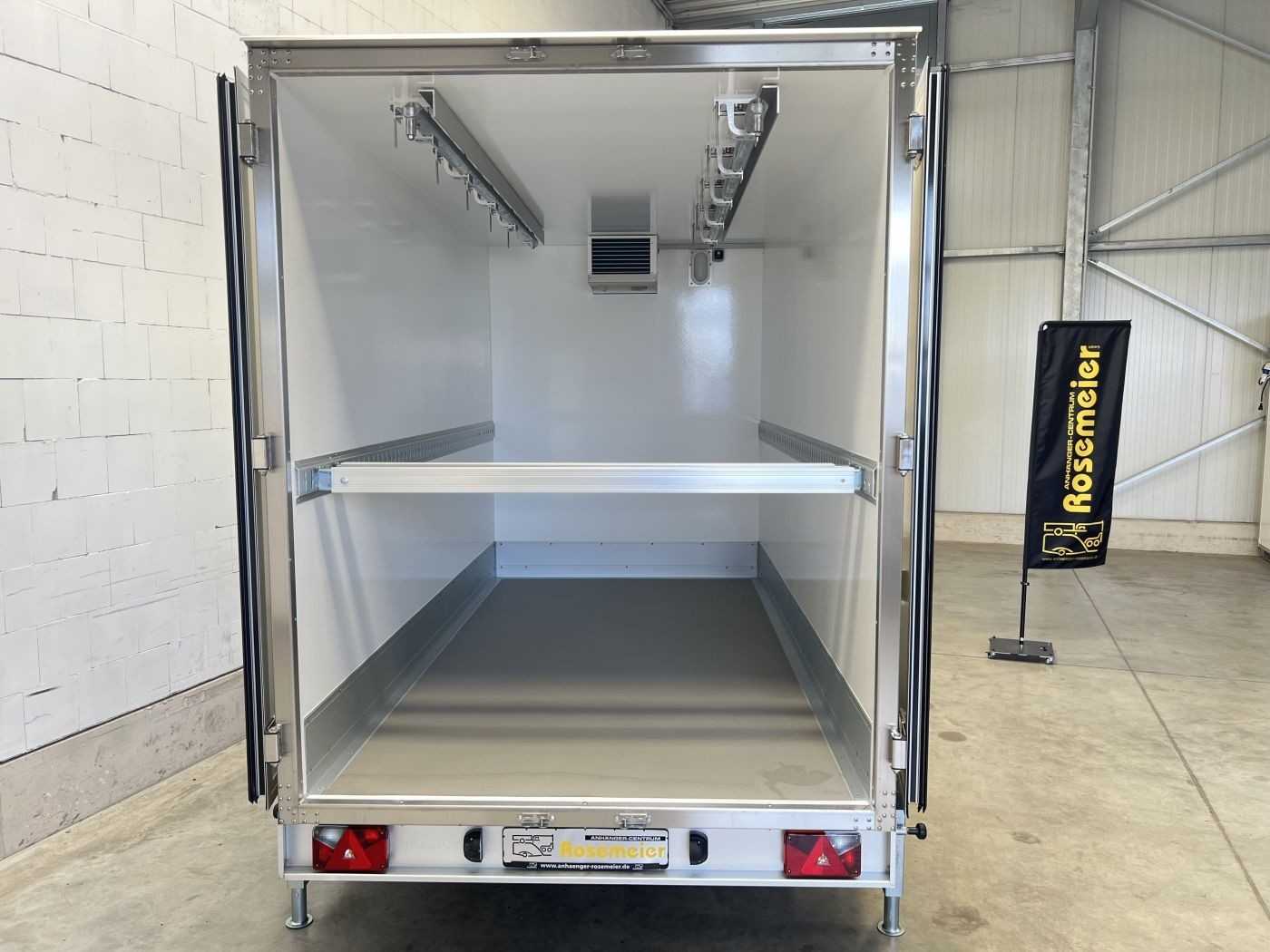 Kühlanhänger mit 2 Rohrbahnen und 2 Sperrbalken zum Einhängen