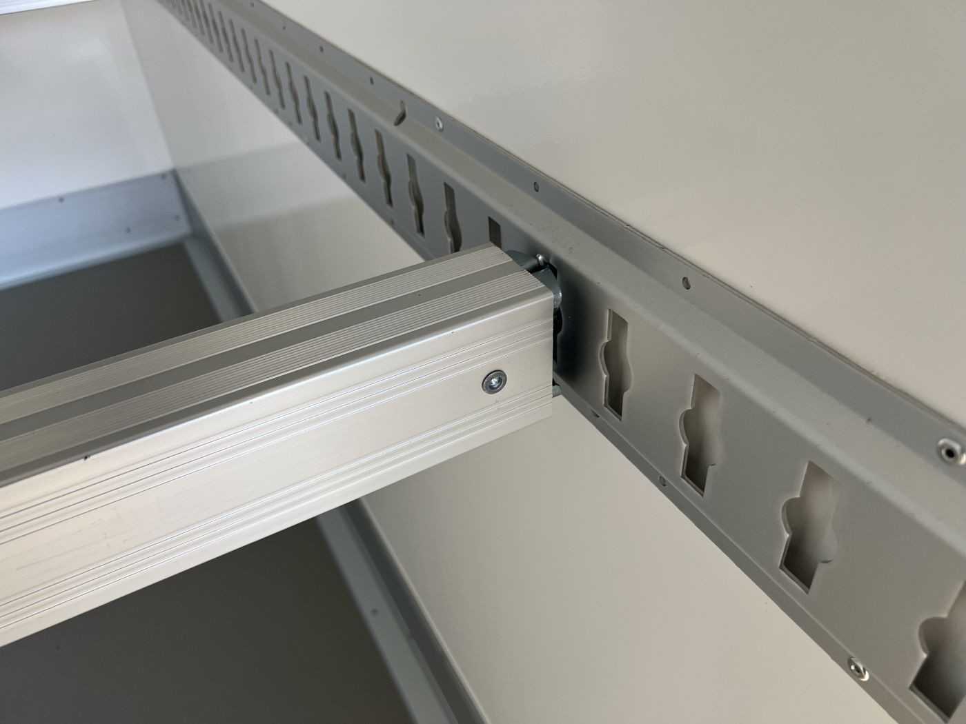 - Zurrleisten an den Seitenwänden oben aufgesetzt, Abstand Boden-OK-Mitte Leiste 1000 mm