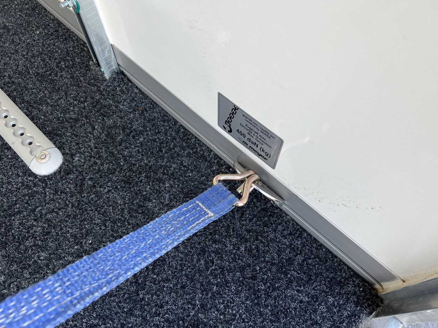 - Fußboden mit Teppichboden ausgelegt, 3 Verzurrschienen montiert