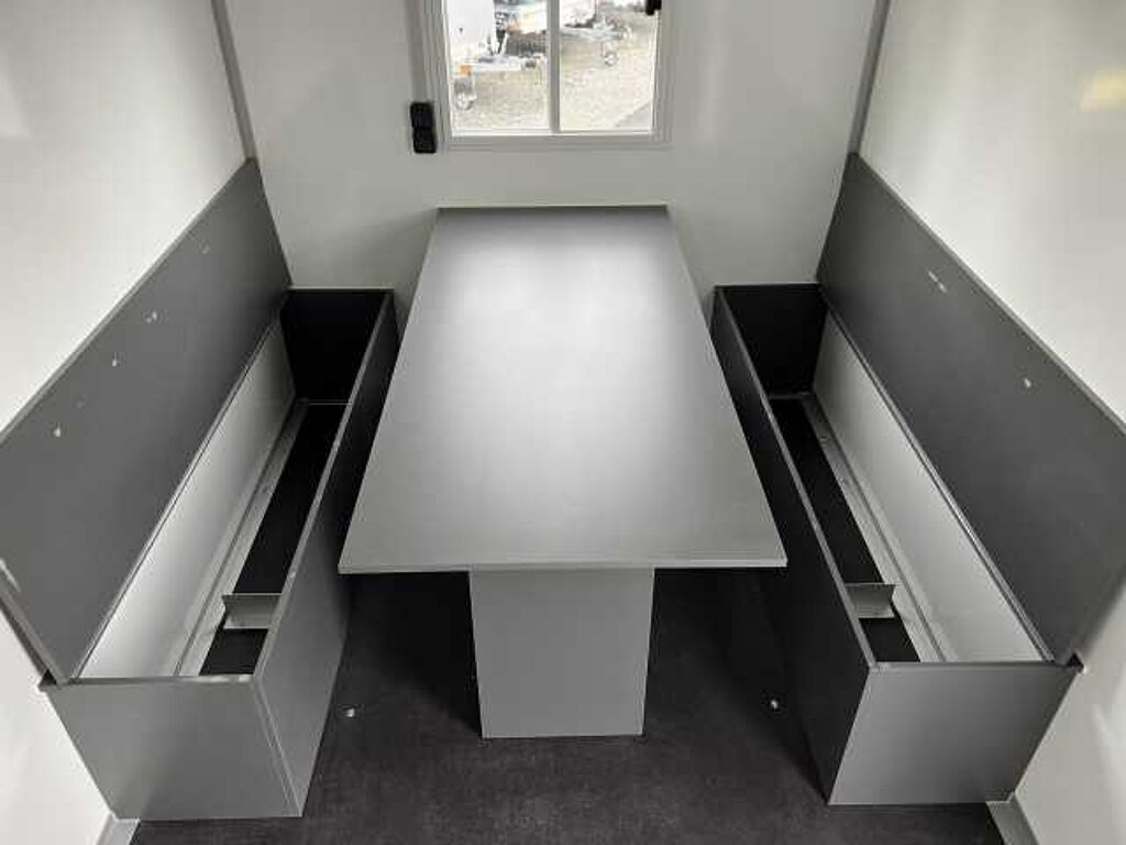 Darüber hinaus verfügen Bauwagen über praktische und vielseitige Ausstattungselemente. Schränke und Regale bieten Platz, um Geräte und persönliche Gegenstände sicher und platzsparend zu verstauen. Im integrierten Kühlschrank können während des gesamten Arbeitsprozesses Lebensmittel frisch gehalten werden.